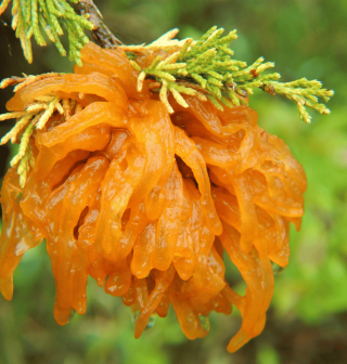 Caused by: Various Gymnosporangium rust fungi